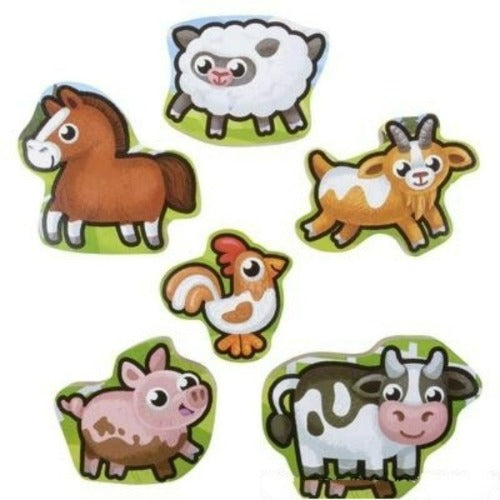 - Kids will love this Chunky Farm Puzzle with six animals: horse, pig, lamb, chicken, pig, goat, and cow.
