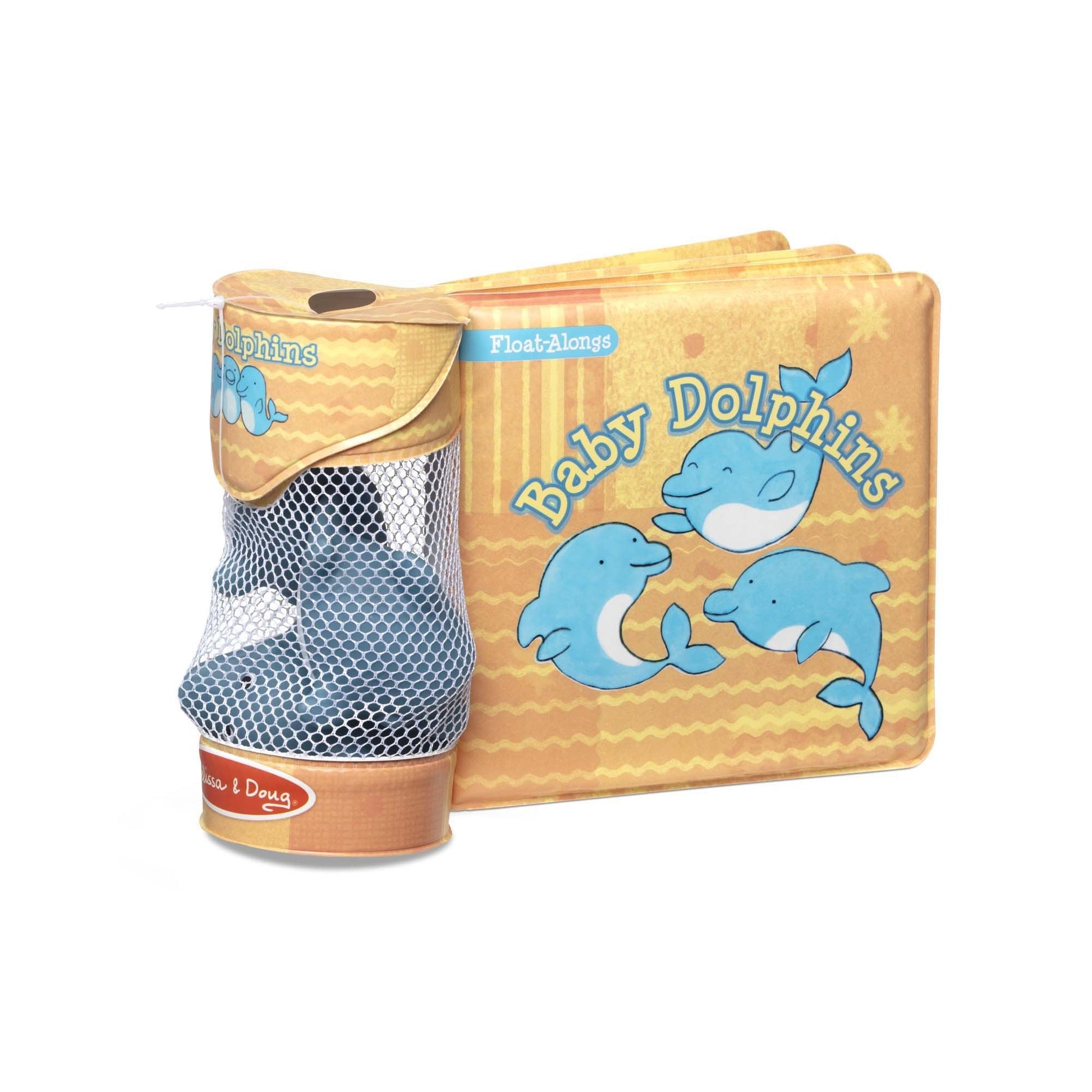 Three delightful floating dolphin toys accompany this soft 6-page bath book. Kids will love playing with the little dolphins as they read the story and learn their colors. Toys store in a mesh tube attached right to the waterproof book!