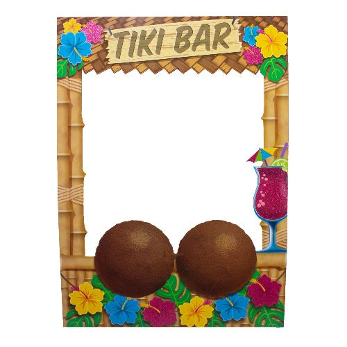 Our hilarious and colorful Coconut Bar Photo Frame comes with a 22.5" x 16" 'Tiki Bar' frame and hand-held sign that reads 'Let's Flamingle'. They are perfect to take fun photos and selfies at your tropical luau, beach & pool theme parties for fabulous memories.