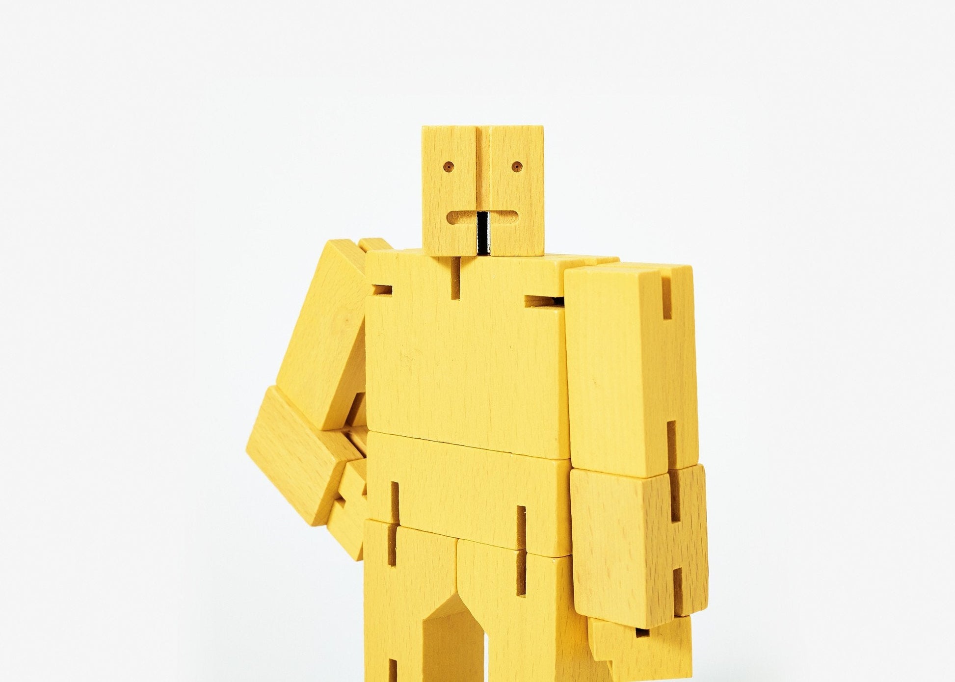 Cubebot® is a wooden toy robot inspired by Japanese Shinto Kumi-ki puzzles. Made from wood and elastic, Cubebot can be positioned to hold dozens of poses. When it's time to rest, Cubebot folds back into a perfect cube. A classic toy for all ages that will endure generations of play. Recommended for ages 3+