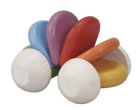 The award-winning, wooden Rainbow Baby Car by PlanToys is composed of 6 flexible disks which react to your child's touch and flatten the Baby Car. It then bounces back when the child stops applying pressure. It also has wheels so kids can scoot, crawl, and walk with the Rainbow Baby Car. The Baby Car is designed to make it easy for small hands to push, pull, and flatten. Car measures 3.3 x 3.9 x 2.8 inches. A great way of helping to build visual and fine motor skills. This finely crafted baby toy is made from chemical-free rubber wood, and non-toxic paints and dyes in Thailand.