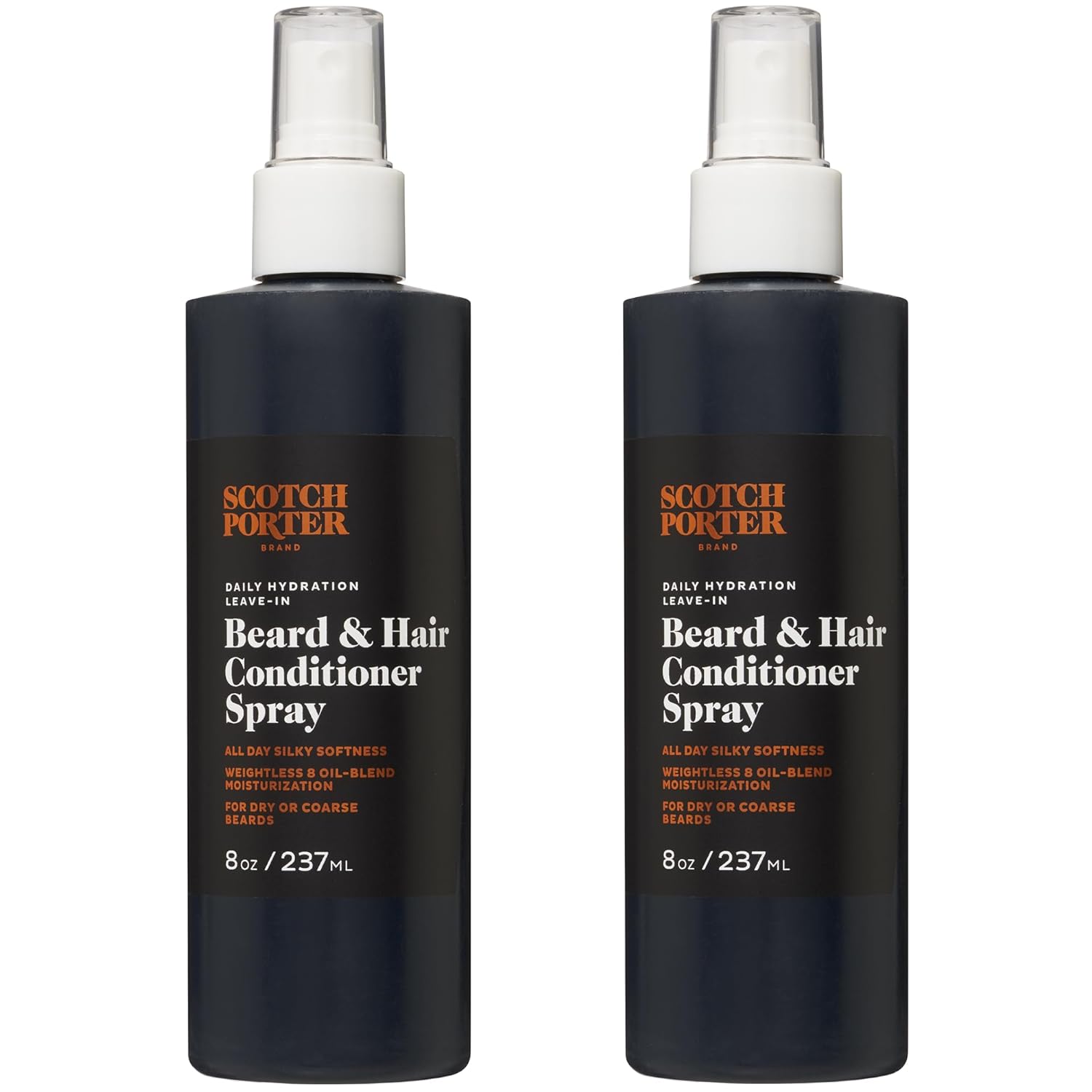 Scotch Porter Leave-in Conditioner Spray for Men | Daily Hydration Leave-In Beard & Hair Conditioner Spray | Non-Toxic Ingredients, Free of Parabens, Sulfates & Silicones |8oz – 2 Pack